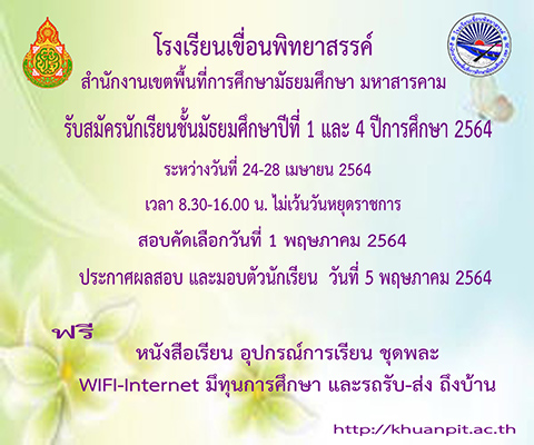 รับสมัครนักเรียน ม.1 และ ม.4 ปีการศึกษา 2564